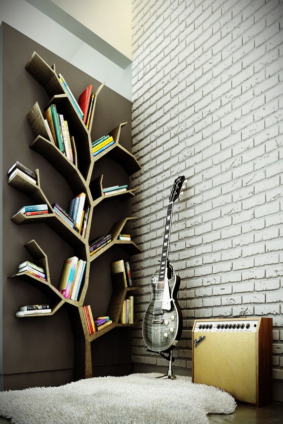 Books Guitar Room Corner Tree Bookshelf Poster 24 X 36 Inch Etsy